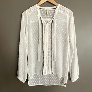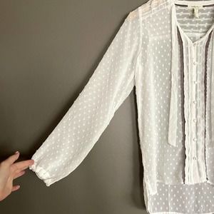 Matilda Jane Renae Top Size XS White Sheer Swiss Dot Print Button Down