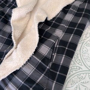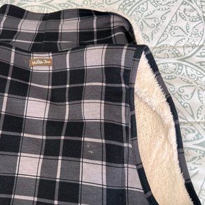 Reversible very from Matilda Jane, one side is soft cream sherpa, the other is black and gray plaid. Both sides have pockets, plaid side has the MJ take on the back. Size tag has been removed so it would not be visible when reversed, I was able to look back in my order and vest is a size medium.