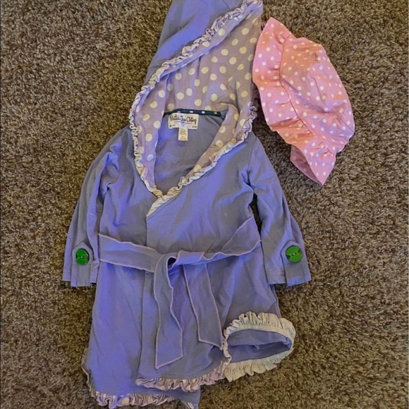 Reversible Matilda Jane hat, size 6-12 months (runs large). Matilda Jane Robe that we used as a swim suit cover up (runs very small, 2T but fits more like 12-18 months). Excellent used condition, clean, pup-friendly home.