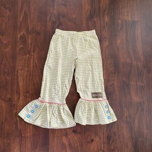 Super cute and comfy! Green stripe with pink piping and cute blue flower shaped buttons.