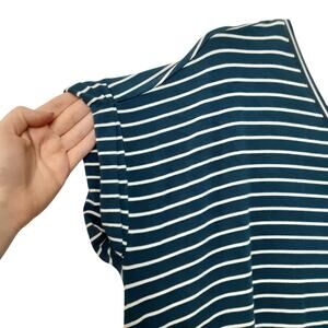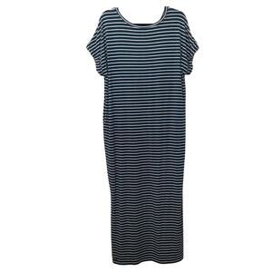 Matilda Jane Set Sail Maxi Dress Teal White Nautical Stripe Womens L Jersey Knit