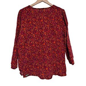 • Matilda Jane Shirt Woman Small Red Floral Peasant Gauze Crepe Lightweight Boho