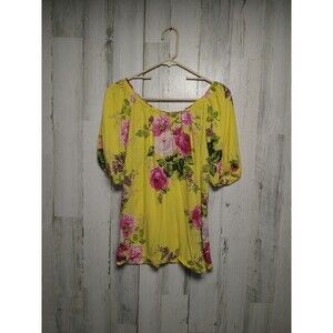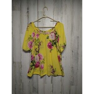 Matilda Jane Shirt Womens Small Yellow & Pink Floral Boho Peasant Top