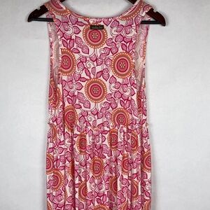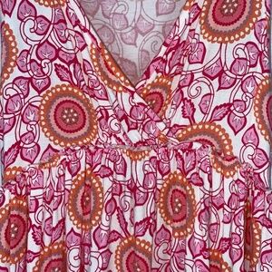 Matilda Jane Skyride Babydoll Medallion White, Pink and Orange Floral V-Neck Sleeveless Tank Top, Small, EUC. In excellent condition without rips, tears or stains. When laid flat, this top measures 16” across from pit to pit and has a length 29” from the top of the back collar to the hem