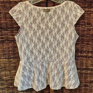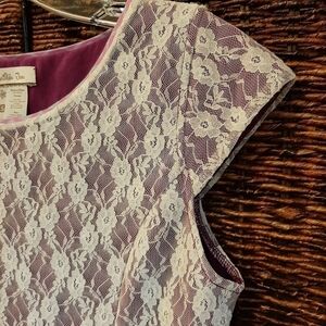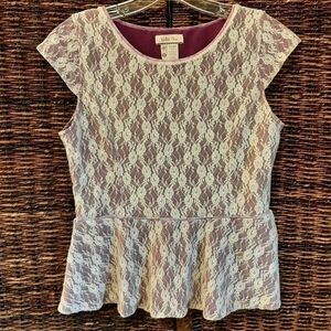 Matilda Jane Small Pippenger Peplum Lace Top AT1593 Purple Cap Sleeve Twee