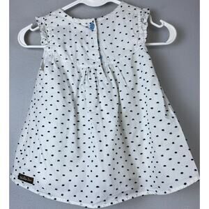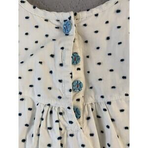 Matilda Jane Small Boutique sizing Sz 8 Raised Dot Wht Ruffle Ctn Lined Embellished Aqua Buttons. No holes, tears or stains