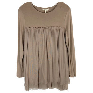 Matilda Jane Small Top Blouse Brown Tiered Gathered Long Sleeve Scoop Neck 1330