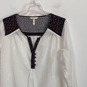 Matilda Jane Snow Globe Eyelet Tunic Top XXL Plus White Roses Long Sleeve Boho