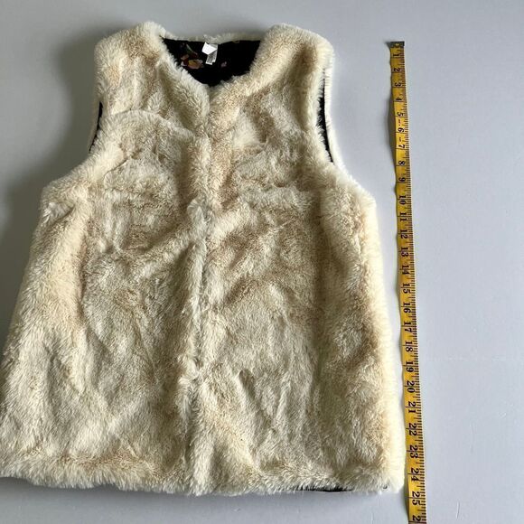 tags: women's faux fur vest floral vest winter fall quality fashion brand matilda jane classic classy romantic fake fur great condition ivory off white cream vest