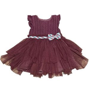 Matilda Jane Soiree Cable Knit Tulle Dress Bloomers Once Upon A Time plum 12-18