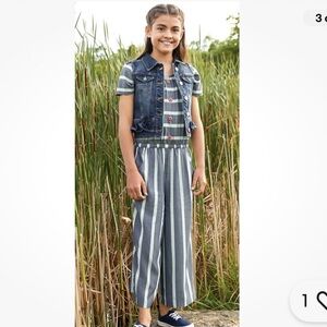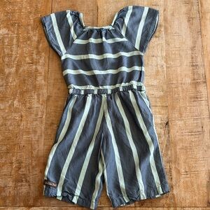 Gently used. Adorable striped romper. No holes or stains. Light wear. Matilda Jane Wonderment My Oh My Jumpsuit Blue Striped Nautical.