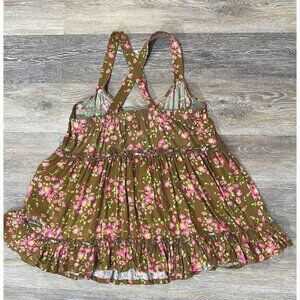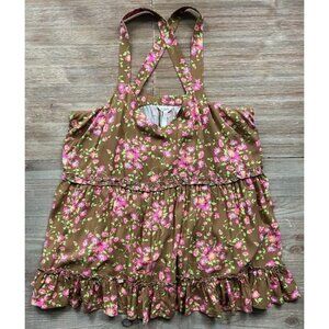 Matilda Jane Sz M Brown Pink Floral Print Ruffle Criss Cross Back Tank Top Women
