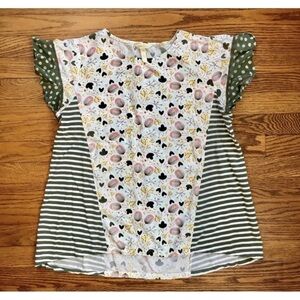 Matilda Jane Sz M Floral Print Ruffled Top Flutter Sleeve Spring Summer Womens