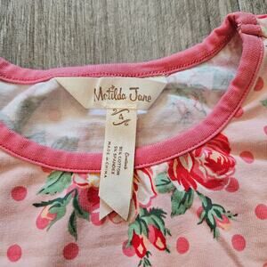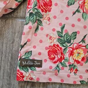 Delight in whimsical style with this Matilda Jane “Brilliant Daydream” Top in girls’ size 4. Crafted from soft cotton jersey, the rosy-pink background is dotted with tonal polka dots and overlaid with vibrant rose bouquets. Signature ruched cap sleeves add playful volume, while the relaxed silhouette ensures all-day comfort for school, playdates, or picture days. Excellent pre-owned condition; fully laundered and free of pulls or stains.