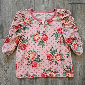Matilda Jane Top Girls 4 Pink Rose Polka Dot Ruched Sleeve Boutique Charmingcore