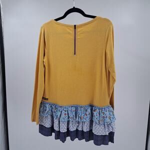 Matilda Jane Top S Make Believe Weekend Vibes Long Sleeve Ruffle Yellow Blue
