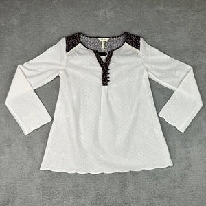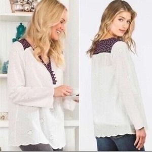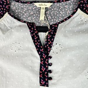 Matilda Jane Top Small Snow Globe Eyelet Scallop Hem Contrast Micro Floral Trim