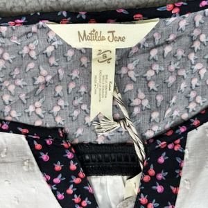 Matilda Jane Top Small Snow Globe Eyelet Scallop Hem Contrast Micro Floral Trim.