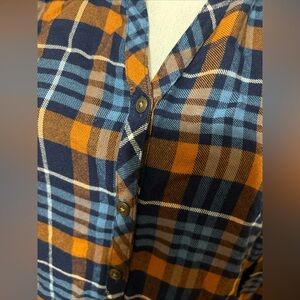 Matilda Jane Top Women’s Small Blue Orange General Store Plaid Tunic Ruffle Hem