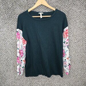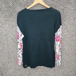 Matilda Jane Top Womens Small Teal Scoop Neck Floral Sleeve Knit Casual Ladies