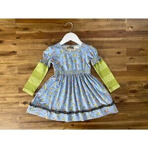 Matilda Jane Vintage Miss Roboto Dress in Size 2. From the You & Me - Fall 2011 Collection. Good used condition only for normal wash wear and some light staining (may be fading due to age) right above the waistline smocking (see pictures). Super cute for your little girl or someone special!