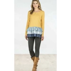 Matilda Jane Weekend Vibes Sz Small Yellow Mixed Floral Tiered Ruffle Hem Shirt