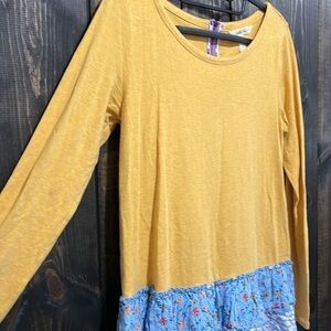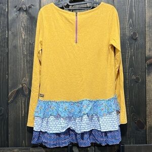 Matilda Jane brand blouse. Weekend Vibes Tunic Top. Long Sleeves. Size x-small. Yellow with mixed colorful floral prints. Tiered hem design with ruffles. Such a cute top! Looks great with leggings & jeans. Great for fall. Feminine details. Preloved. Please see all photos for condition. Zipper back.