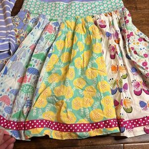 This vibrant kids dress features a playful mix of stripes and colorful patterns. Perfect for adding a splash of color to any day.