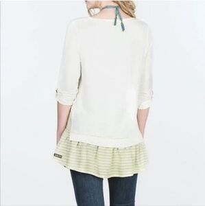 Chic tunic with a layered design. White top with green striped accents. Perfect for versatile styling.