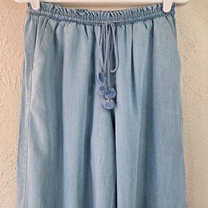 Matilda Jane Wide Leg Gaucho Pants Chambray Blue Pull On Stretch Waist Palazzo