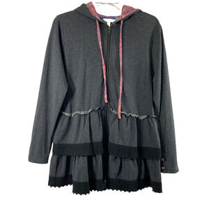 Matilda Jane Wise & Wonderful Jacket Womens Medium Gray Ruffles Hoodie Full Zip