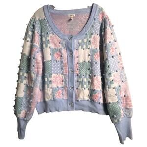 Matilda Jane Women Sz XL Heart to Heart Waltz of the Flowers Patchwork Sweater Cottagecore Romantic Cardigan ButtonUp Coquette Floral