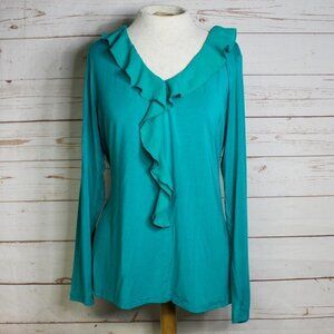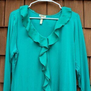 Matilda Jane Women's Forever Friends Britta Long Sleeve Green Ruffle Blouse XL