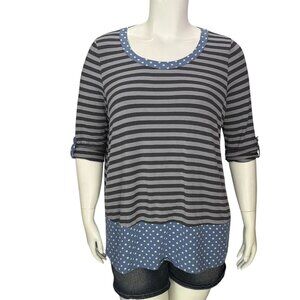 Matilda Jane Womens Get Lost Knit Top Stripes and Polka Dot Blouse Size XXL