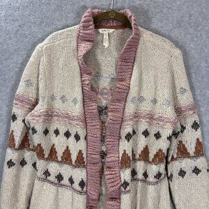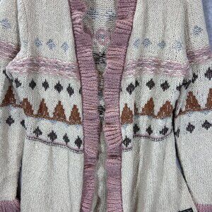 Matilda Jane Womens Jacie Ruffled Knit Cardigan Sweater L Wool Blend Boho Aztec