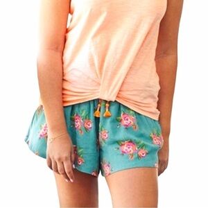 Matilda Jane Womens Medium Long Walks Shorts Floral Pull On Green Pink 27698B