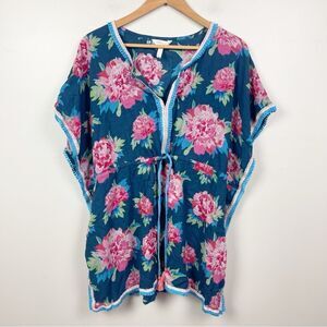 Matilda Jane Women's Medium Cool Shade Coverup ~ Floral Fringed Cotton Beach