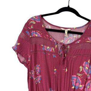 Matilda Jane Women's Pink Floral Rayon Lace Detail Dress Size M