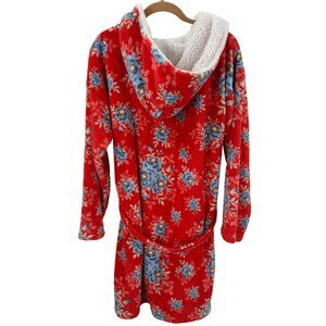Matilda Jane Womens Plush Floral Robe With Hood & Belt Red/Blue Size S