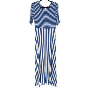 Matilda Jane Women's The Road Ahead Blue Striped Maxi Dress Pockets Size Medium