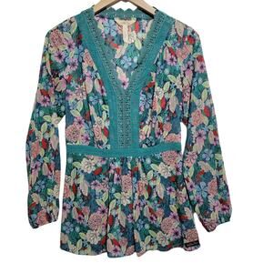 Matilda Jane Womens Top Kookaburra Floral Chiffon VNeck Size Small