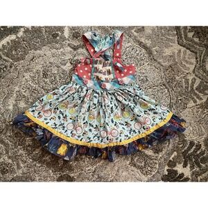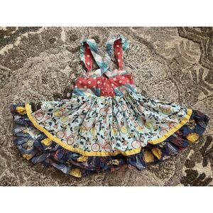 Matilda Jane Wonderment Bike Path Knot Dress SZ 2 Apron Whimsical Pink