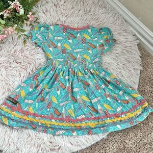 Matilda Jane Wonderment Soda Pop Turquoise Pink Yellow Ric Rac Dress Girls Sz 2