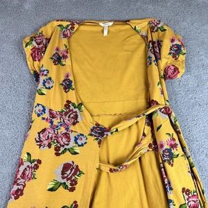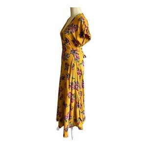 Matilda Jane Wrap Maxi Dress Womens Small Mustard Yellow Floral Alana True Wrap.