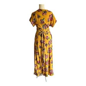 Matilda Jane Wrap Maxi Dress Womens Small Mustard Yellow Floral Alana True Wrap