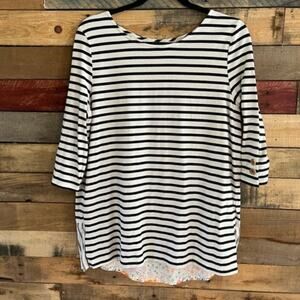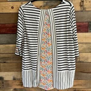 Matilda Jane X Gaines Harvest Days Black White Striped Floral Top Size Medium