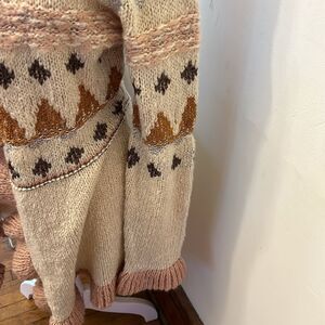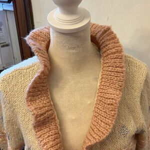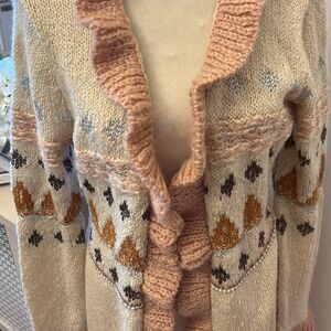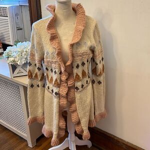 Matilda Jane cream pink open ruffle patterned cardigan Size M New