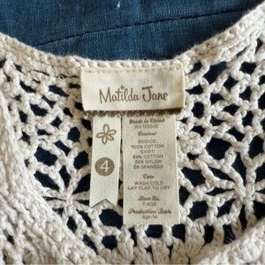 Matilda Jane crochet Top Dress Size 4. Excellent condition. Let me know if you have any questions