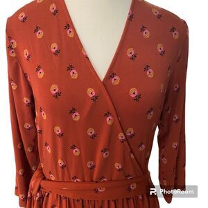 Matilda Jane faux Wrap LS dress Sz M Modal cotton Floral Comfort Quality Logo