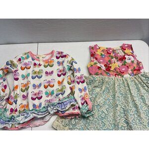 The Matilda Jane lot size 2 top and dress for girls features a colorful floral pattern, perfect for the spring, summer, and fall seasons. This set includes a matching top and dress in vibrant multicolored hues, making it a stylish and versatile addition to any young girl's wardrobe. Made by the popular brand Matilda Jane, this outfit is sure to be both comfortable and fashionable for any occasion